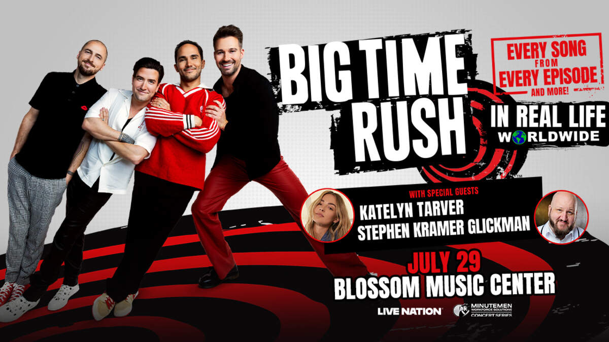 Big Time Rush comes to Blossom Music Center on Tuesday, July 29 at 7:00 PM as part of the In Real Life Worldwide Tour! Joining the show are special guests: Stephen Kramer Glickman and Katelyn Tarver! For complete show details and to purchase your tickets, click HERE starting Friday, February 28 at 10:00 AM!