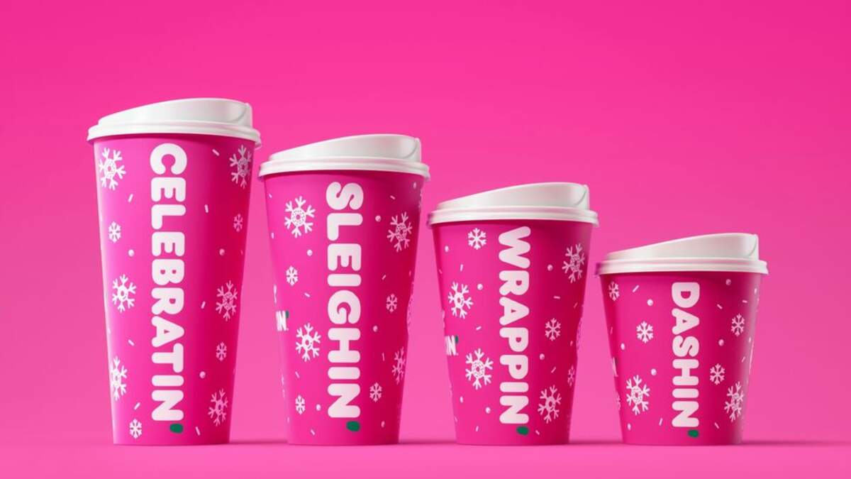 The holiday menu debuts at participating Dunkin' shops on Wednesday (November 6). All the holiday menu drinks will be served in classic Dunkin' pink holiday cups. This year's design will have the words "celebratin'," "sleighin'," "wrappin'," and "dashin'" on them.